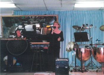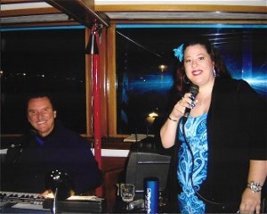 Rocking the boat performing a fundraiser on John Wayne's Wild Goose yacht in Newport Beach, California. Click on photo to enlarge it. | ![]() |